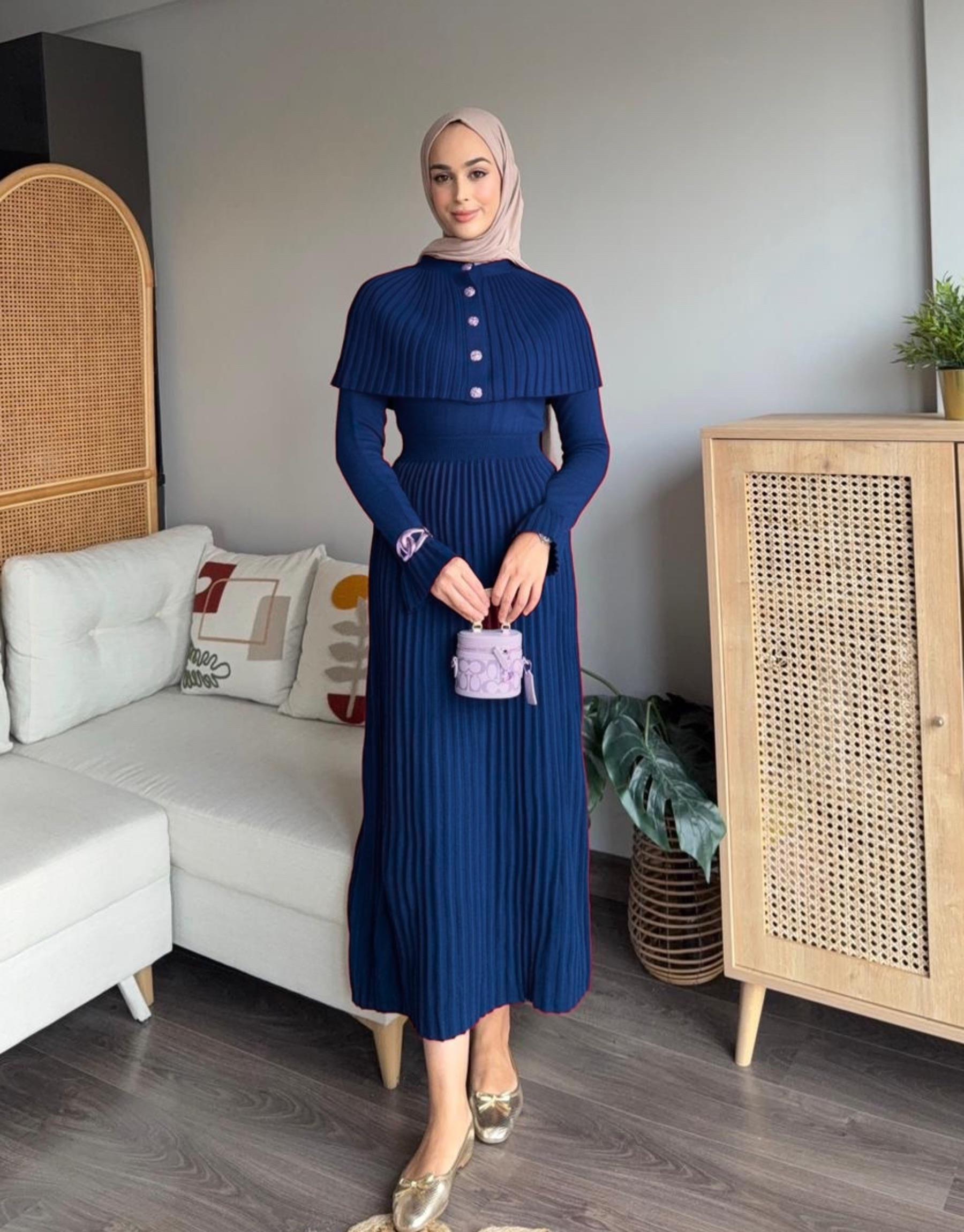 Pelerinli Triko Elbise | Elifsmoda